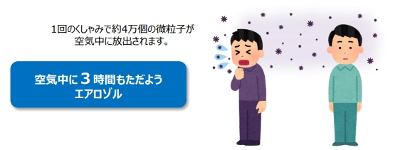 アメリカの感染症学会の報告書では「換気の悪い室内では、地上1.5メートルの高さで感染者から放出されたウイルスを含んだ微細飛沫が空気の循環で数十メートル先まで移動する可能性がある」と指摘されています。