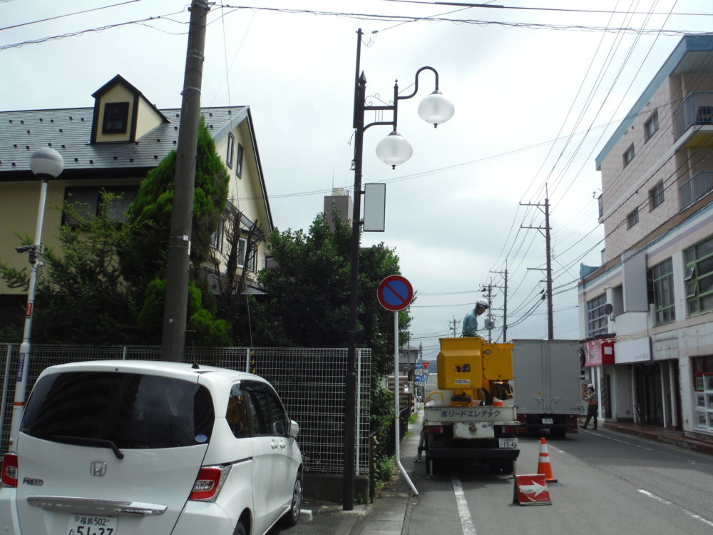福島市街路灯組合様LED化工事 所在地 福島市黒岩・伏拝地内 施工時期 令和2年7月 工事概要 2灯用街路灯ナトリウムランプからLEDランプへ交換 安定器撤去、自動点滅器全交換 特記事項 LEDランプへ交換したことで、電気料金は約74%安くなります。 現地調査・お見積り・電気料金シミュレーションは無料で承っています。 ①自動点滅器交換前 ②自動点滅器交換 ③ナトリウムランプ40W ④LEDランプ17W ⑤ナトリウム灯安定器 ⑥安定器取外し後、ケーブル結線 ⑦自動点滅器、各ケーブル結線完了 ⑧点灯状況 全景 ⑨点灯状況 近景 ⑩完成