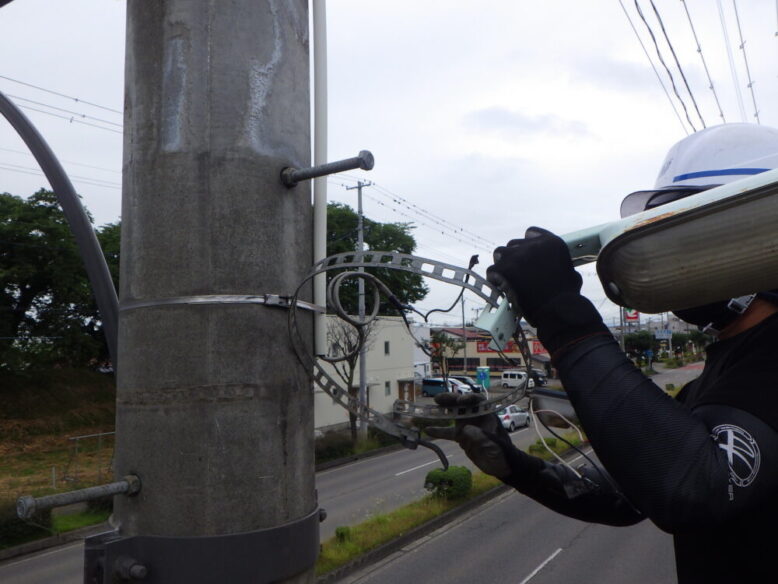 会津若松市町内会様防犯灯LED化工事 所在地 会津若松市 施工時期 令和5年6月下旬 2日間 工事概要 町内会様管理防犯灯をLED防犯灯に交換または新設。38基 特記事項 電気料金も上がっていますので、少しでも電気料金を抑えたい個人の方や自治会の方は、是非ご相談ください。 施工前 施工後 施工状況① 古い防犯灯取外し 施工状況② LED防犯灯取付 施工状況③ 結線後点灯試験